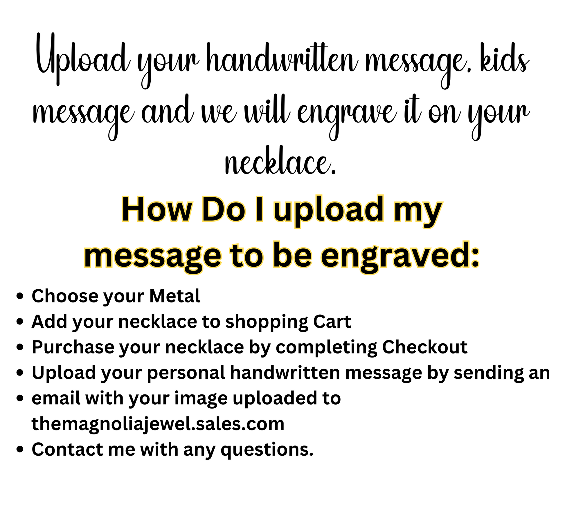 - Pendant: Custom laser cut from your submitted handwriting
